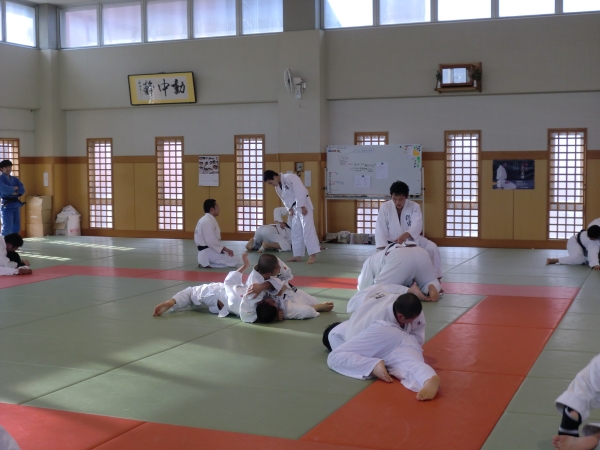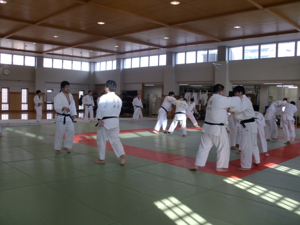 小学校や中学校から柔道をしている者の中には修道の生徒とすっかり打ち解けている生徒もいて、練習の前後は和気藹々と楽しそうに漫談していました。