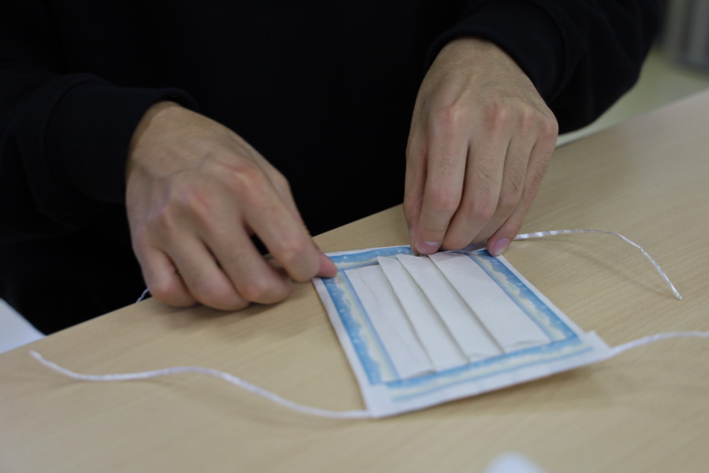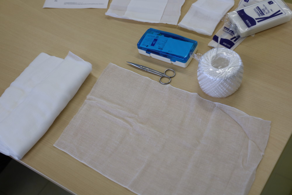 まずは、ガーゼ、針、糸、ゴム紐を用意します