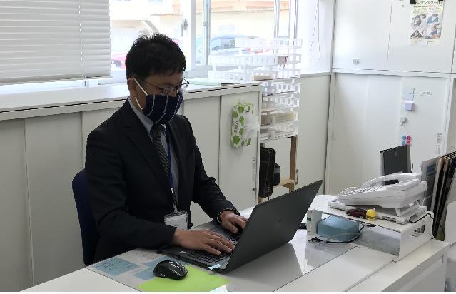 こちらはハンカチマスクを着けている橋本教頭先生。