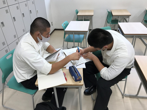 【柔道部】文武両道 柔道部 2020.09.24 連休明けの23日からは第2回定期試験前の試験週間で,部活はお休みです。 部員は自習室に集合して,真剣に試験勉強に取り組んでいます。 教えあうことができるのも校内の自習ならではです。 正に文武両道ですね。 試験でもよい結果を期待しています!