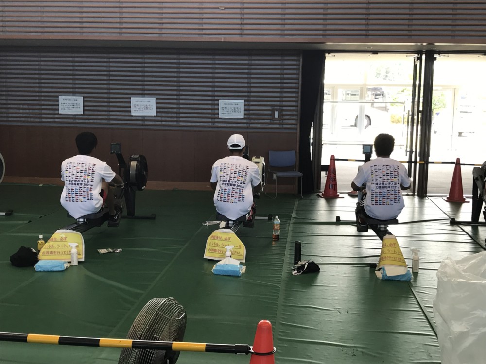公式練習後は、陸上でエルゴを短時間実施。ここ最近、天候不順で練習できていない身体を起こそうと一所懸命です。
