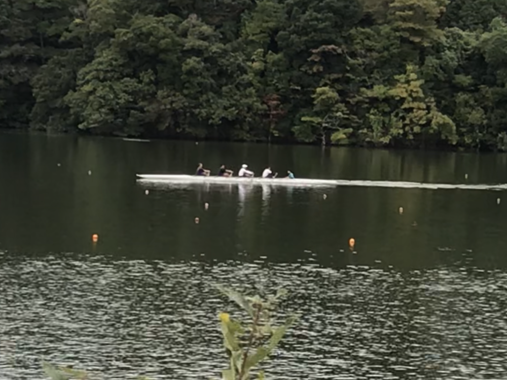 今年は山口県豊田湖にやってきました。舵手付きクォドルプルでのチャレンジです。各県代表クルーによる5艇レースです。上位3艇が全国大会の切符を手にします。