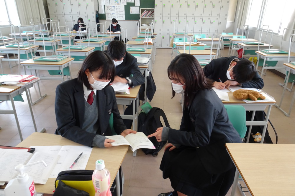 放課後の自習風景 トピックス 2022.03.04 3月1日(火)に卒業式を終え、定期試験1週間前となりました。 放課後には各教室で、懸命に自習に励む姿が見受けられます。 「目標はクラスの3番以内に入ることです」 教員が指導する姿もありました。 自ら学ぶことが力になります。 体調に気をつけて、勉強に励んでくださいね。 (石田)