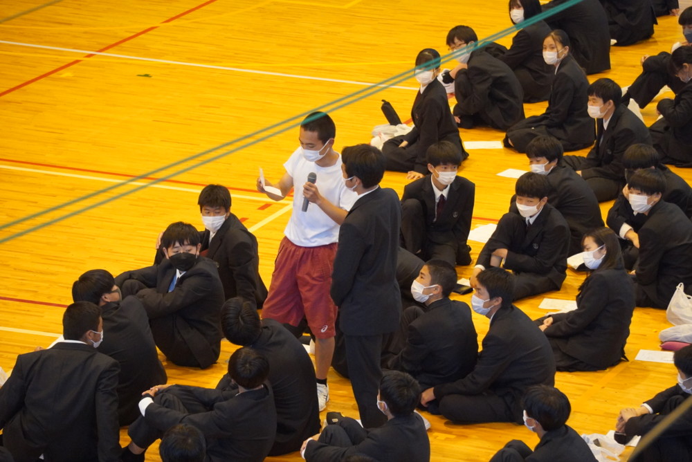 クラブ紹介 トピックス 2022.04.15 本日は、クラブ紹介を行いました。 各クラブの2・3年生は、活動内容を寸劇やデモンストレーションなどで 工夫を凝らした紹介を展開しました。 新入生も目を輝かせて聞いていました! 新入生の皆さん、自分の入りたい部活は見つかりましたか? 興味のある部活には、是非見学に行ってみてください! 充実した学校生活をおくりましょう!(北野)