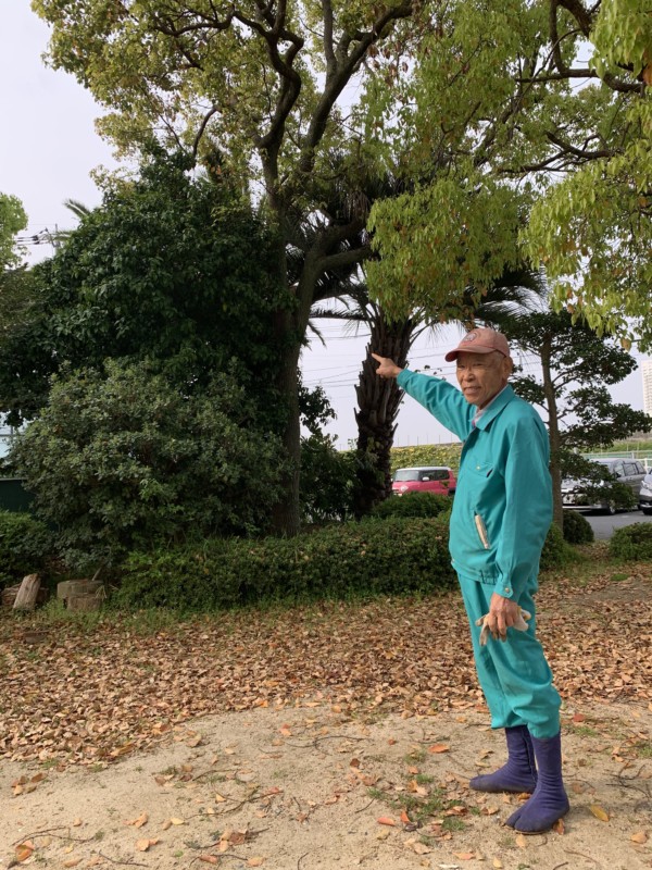 山下先生の話では、30年ほど前職員室の前にある花壇に、ミカンのような苗が生えていたそうです。おそらく、当時の先生がグレープフルーツの種を花壇にプッと吐いたものが、芽を出したのではないかということです。その苗を、今の場所に植え替えたら、10年ぐらい前から小さな実がなりだし、昨年から大きな実ができるようになったそうです。身を収穫してみたのですが、ちょっと食べるには硬くて酸っぱそうですが、グレープフルーツのいい香りがしました。本校にお越しの際は、ぜひグレープフルーツの木を探してみてください。