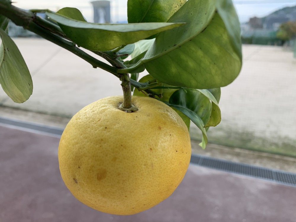 今年から本校に赴任してきた花野先生が、校内の樹木の中に黄色いミカンがなっているのを発見しました。あまり見覚えのないミカンなので、本校の花や樹木の世話をしている山下先生に話を聞いてみたところ、どうやらそれはグレープフルーツだということなのです。