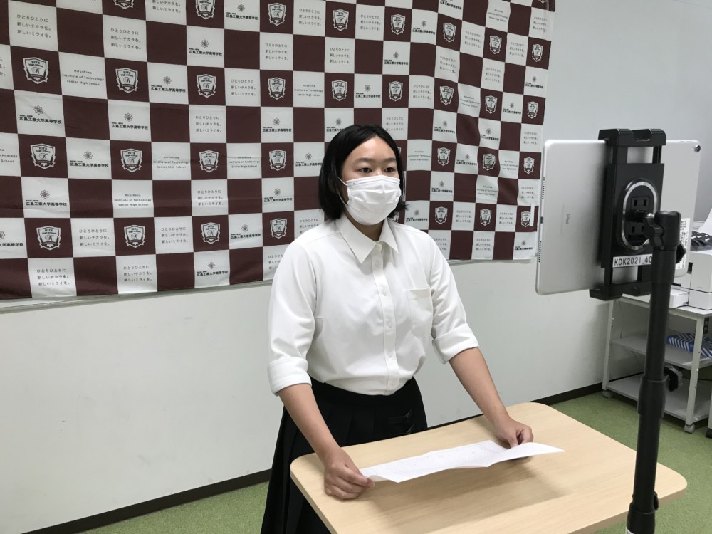 まず生徒会役員の立候補者による所信表明演説です。今年度は各役員の立候補者が定員以内だったため、選挙による投票は実施されませんでした。