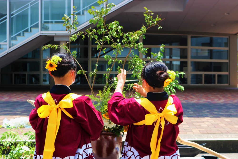 夏の暑い時期に、大会直前には当日の衣装で、何度も何度もお花をいけました。