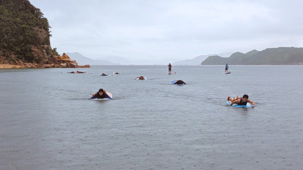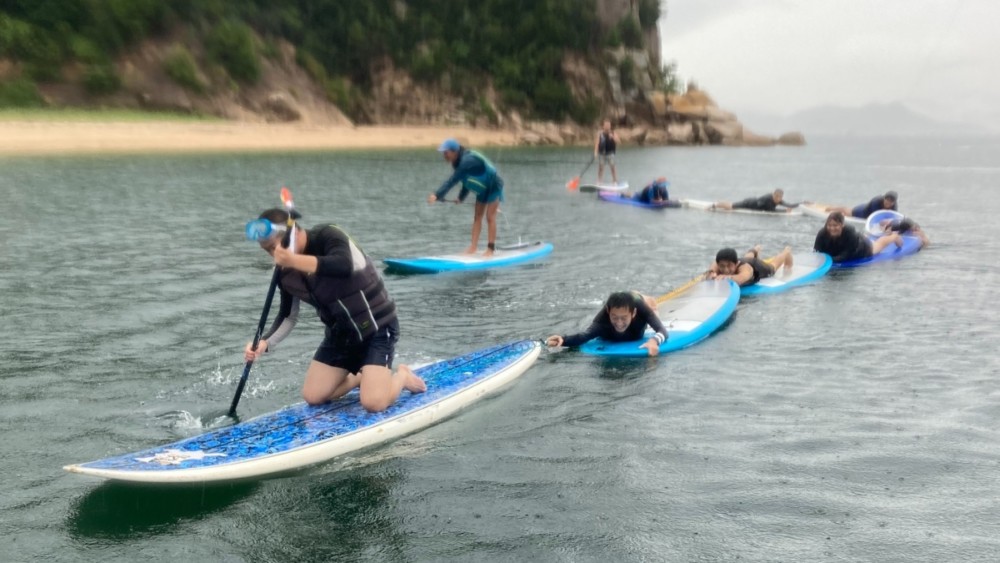 【課外活動】SUP(スタンドアップパドルボード)体験 by柔道部 課外活動 2023.08.24 鶴学園 初等中等教育研究センター主催 夏の課外活動【SUP体験】が、宮島包が浦にて8月23日開催されました。今年は、柔道部の皆さんが参加しました。 SUP宮島のインストラクターのレッスンを受けたら、いざ海へ! 柔軟性、バランス感覚、そして筋力など日頃から部活動で鍛えている力強さを余すところなく発揮! パドルを漕いでみたり、カヤックのように座ったまま漕いでみたり・・・。 広い海上を自由に動き回る心地よさ、SUPの魅力を存分に堪能しました。 来年度は、皆さんも是非参加してみてはどうでしょうか。