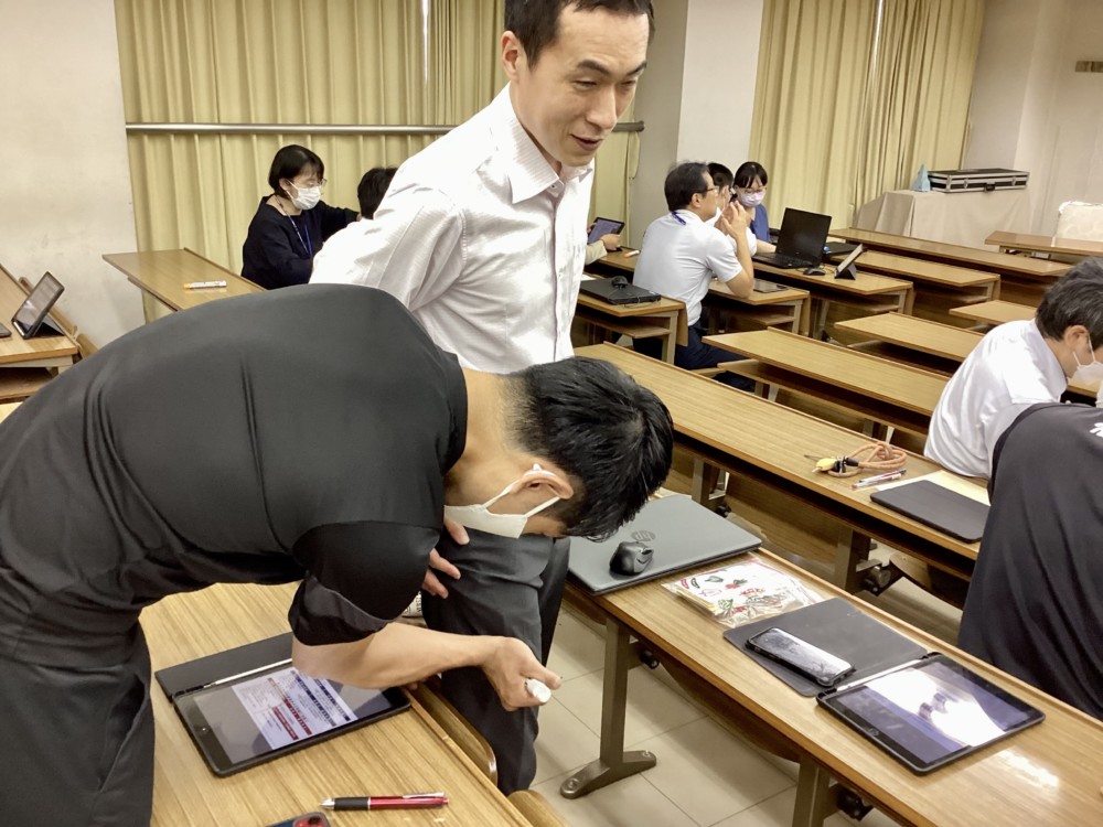 また、エピペンのデモトレーナーを用いた実技練習を行い、実際に人に打つ難しさを実感しました。