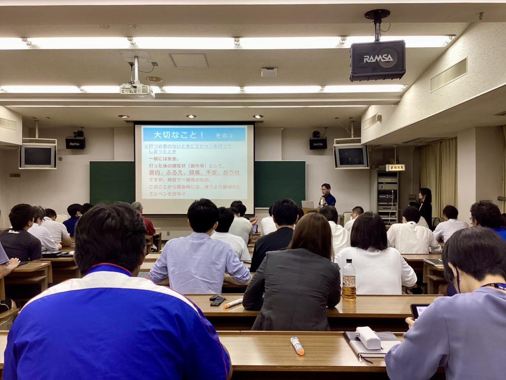 今井先生からは、校内でアナフィラキシー等のアレルギーを発症した際の症状と対応について学びました。