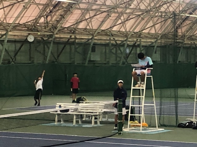 初日は荒天のため、屋内コート(4面)のみからのスタート。
