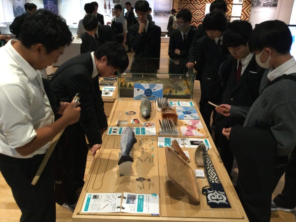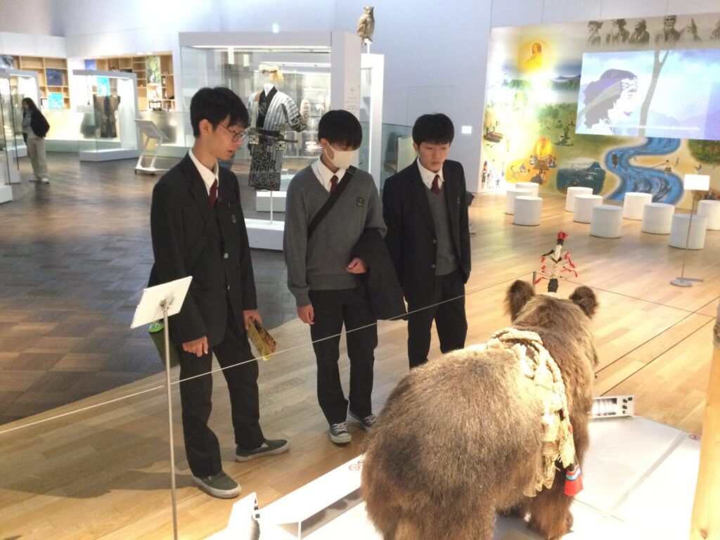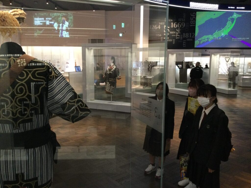 伝統的な踊りや楽器の演奏を見たり、博物館を見学したりと、生徒たちはアイヌの文化に興味津々の様子でした。