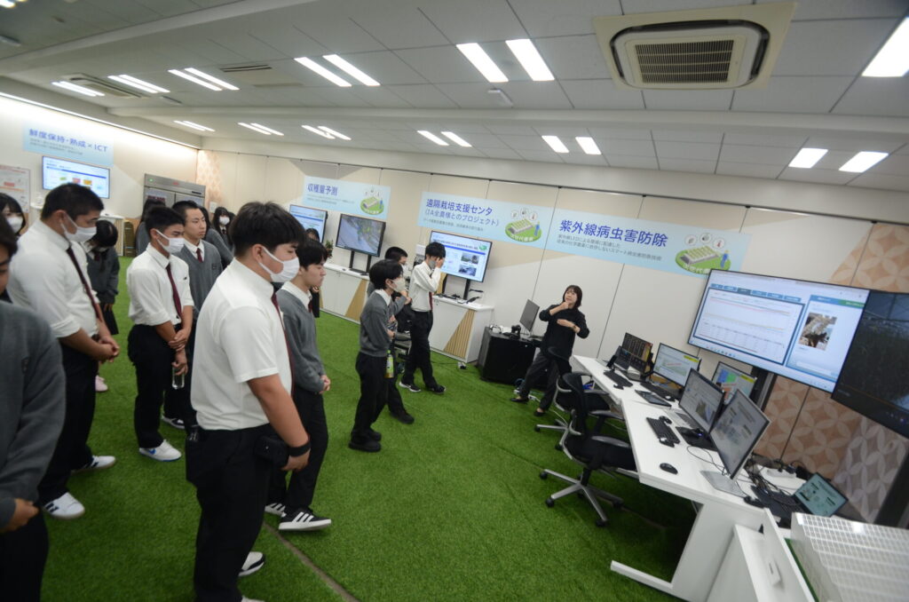通信技術は農業分野でも大きく活かされていました。トマト栽培ではセンサーでの農地管理ができ、専門家がそれをモニタリングすることで現地で働く素人の人にも適切な指示が出せます。詳細な画像によるトマトの苗の生育診断も可能になり、最先端技術で農業の活性化にも寄与できているとのことでした。