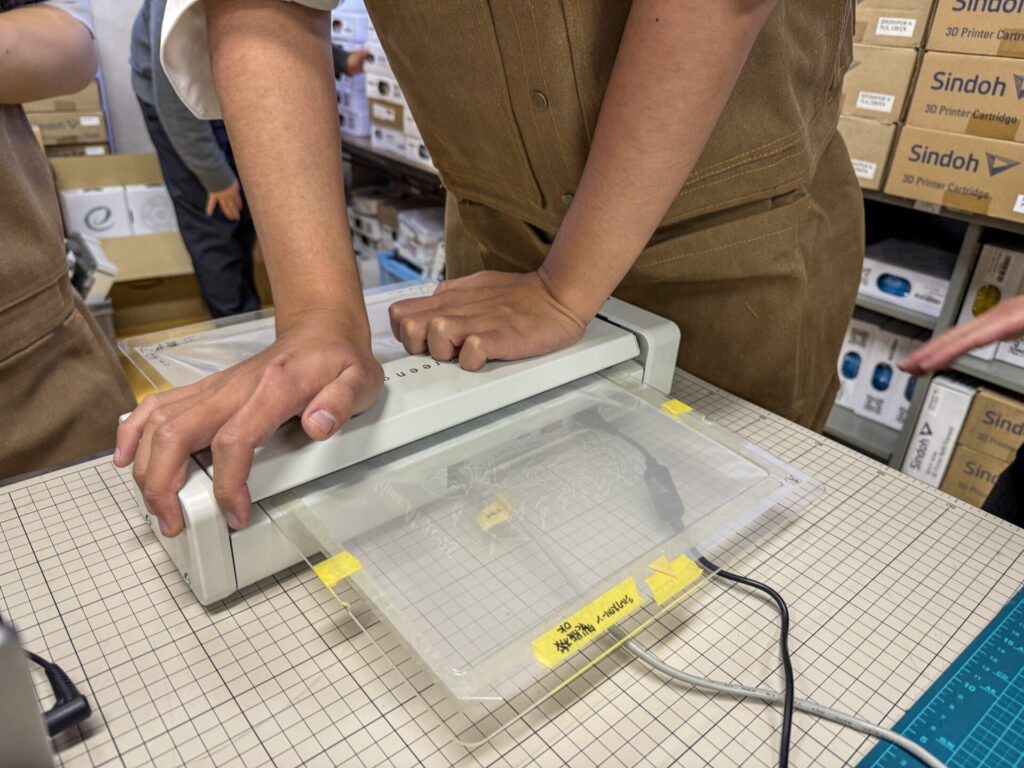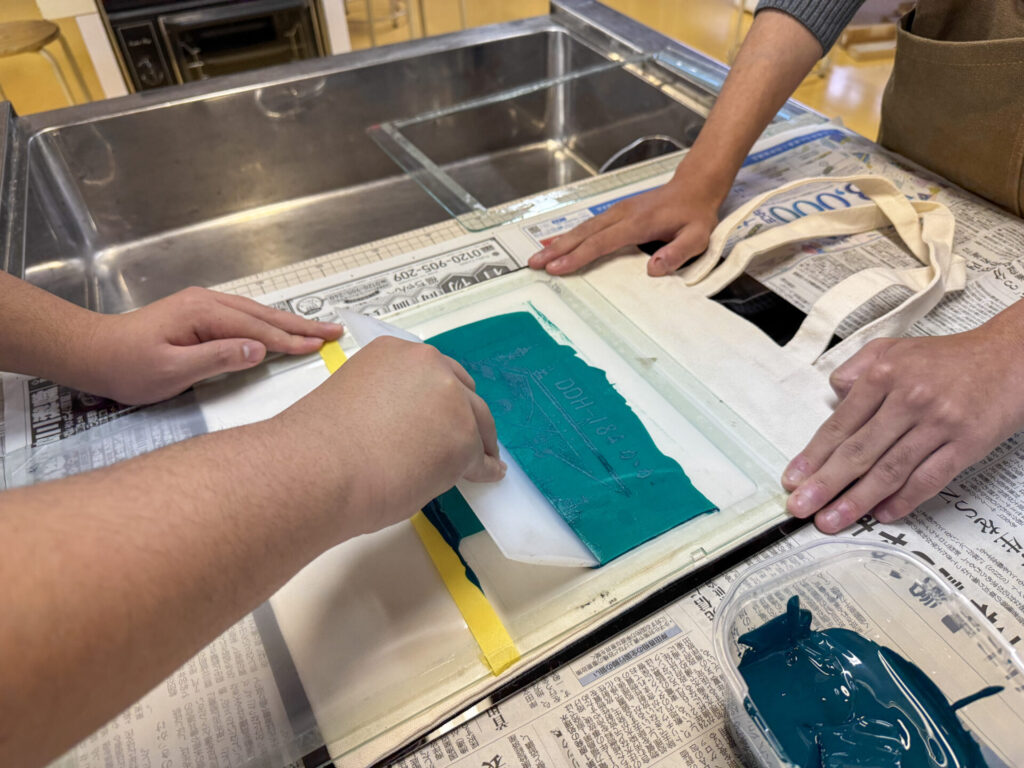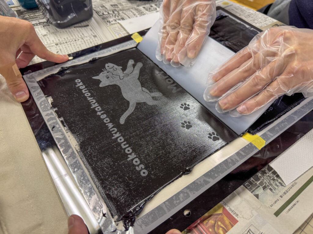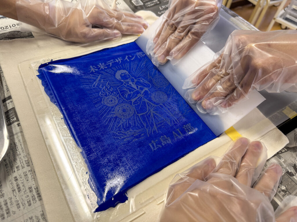 「ものづくり×AIでの課題解決」を目指して、本日はTシャツの作成等にも活用される「シルクスクリーン」を練習しました。