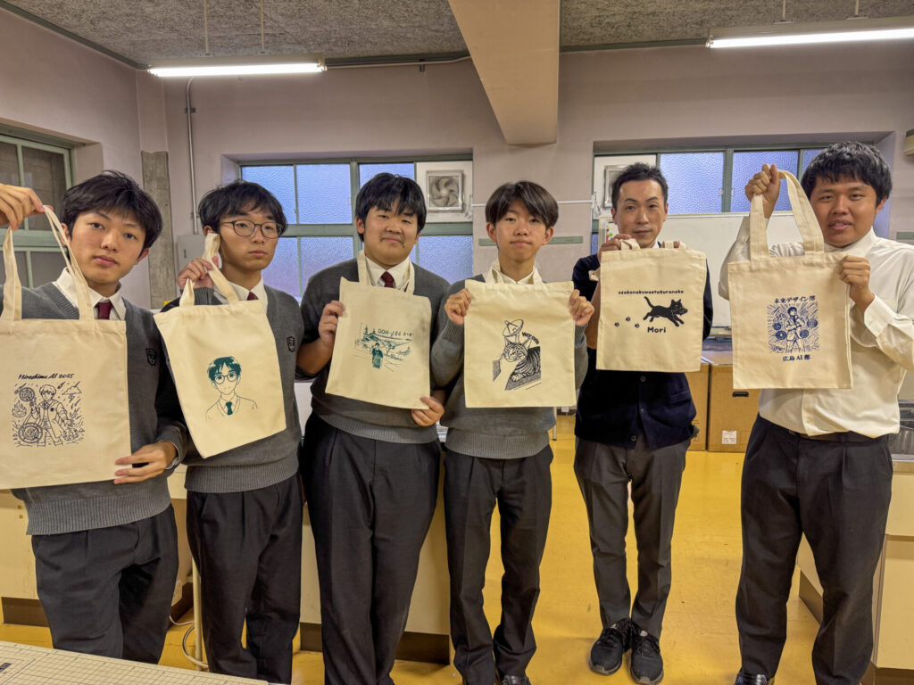 最後は部員で記念写真。自分だけのオリジナルトートバッグが完成しました!