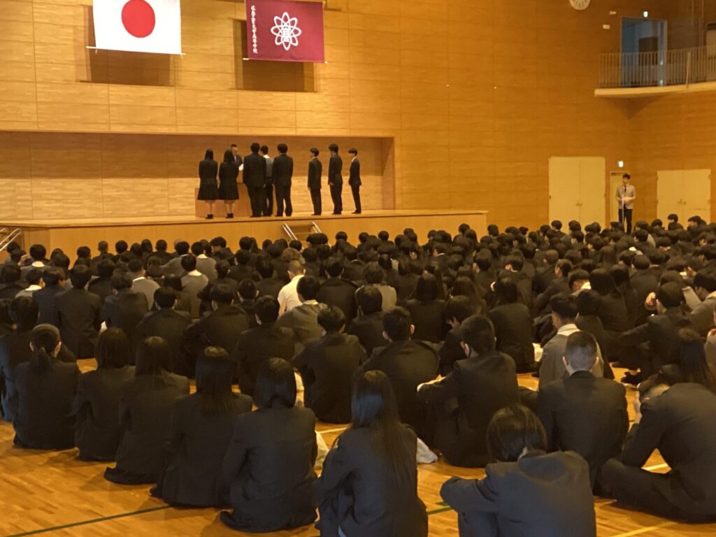 初めに着任式があり、今年度着任された先生方のご紹介とご挨拶がありました。先生方、1年間どうぞよろしくお願いいたします。その後表彰式があり、未来デザイン部及び日本文化部の表彰がありました。